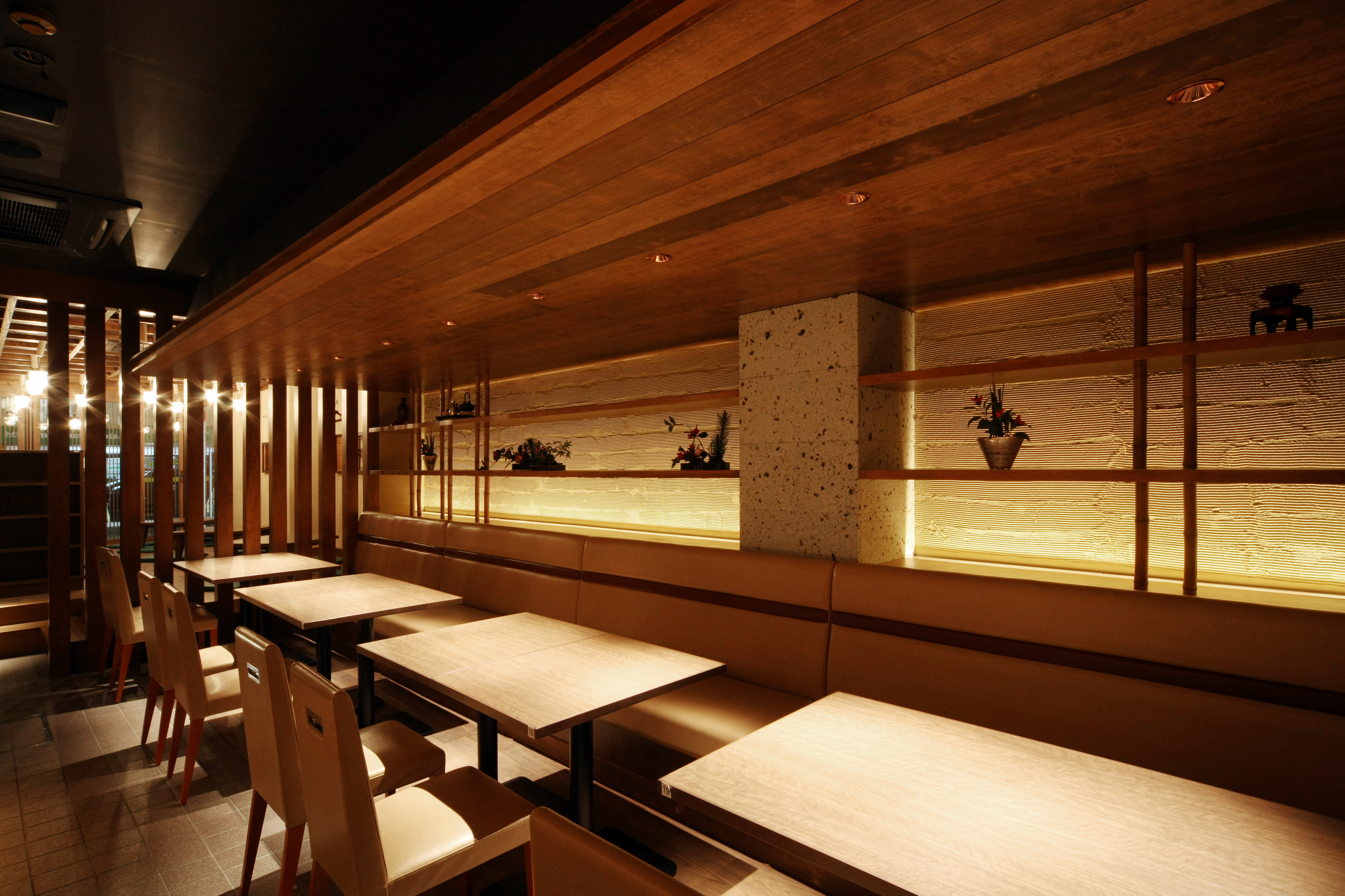 1階は店外に面した風情のあるオープンスペースやテーブル席があり、2階は個室です。